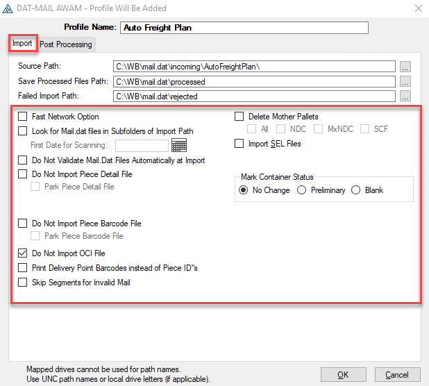 AWAM allows you to create profiles based on mail classes, job types, or clients, enabling automated processing for specific workflows.